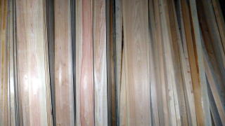 桧の造作材。内装に使える綺麗な物だけ、倉庫